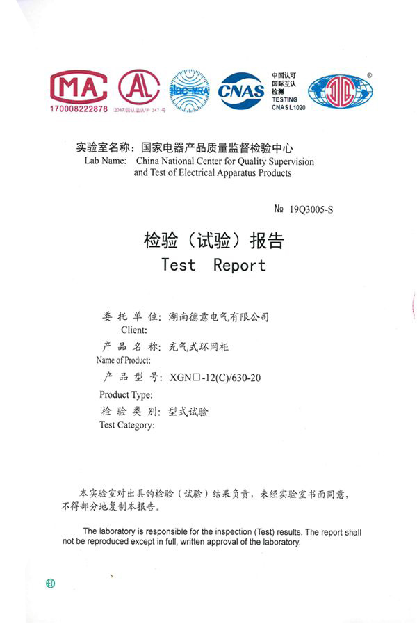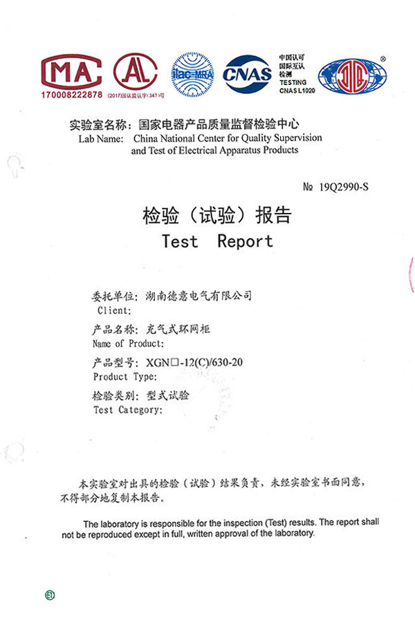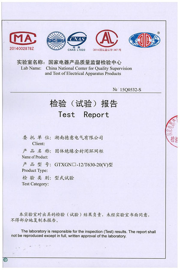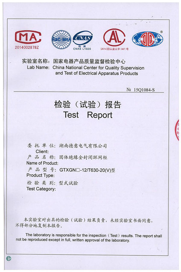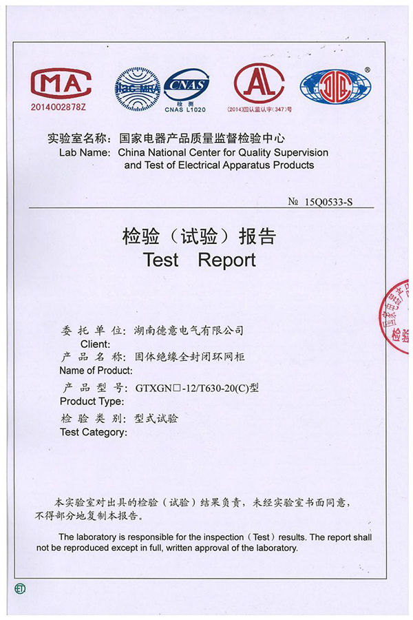 GTXGN□-12/T630-20(V)固體絕緣全封閉環(huán)網(wǎng)柜試驗報告