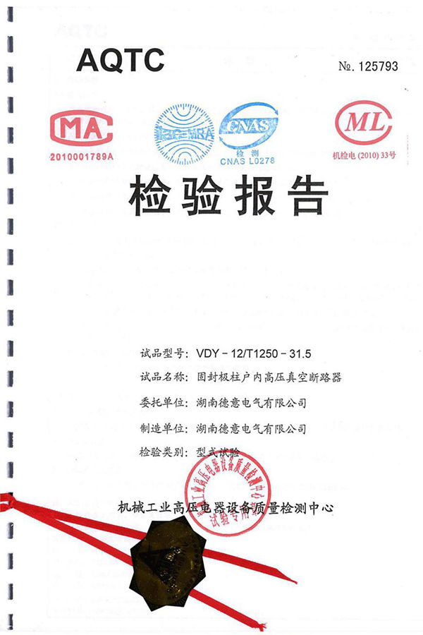 VDY-12/T1250-31.5固封極柱戶內(nèi)高壓真空斷路器試驗(yàn)報(bào)告